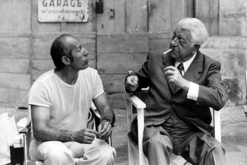 Avec Jean Gabin sur le tournage de Deux hommes dans la ville (1973).